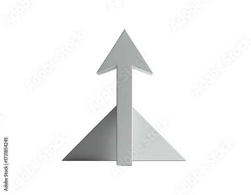 3D rendered, upward-pointing arrow, stylized as a paper airplane