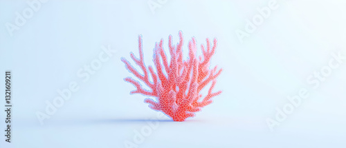 3D Rendered Voxel Coral In Vibrant Pink With Soft Blue Gradient Background and Minimalist Style for a Modern Look