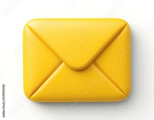 3d Rendered Yellow Email Envelope on White Background, Communication Concept