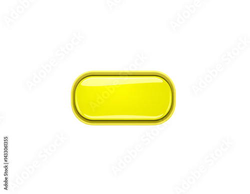 3D Rendered Yellow Rounded Rectangle Button on Transparent Background