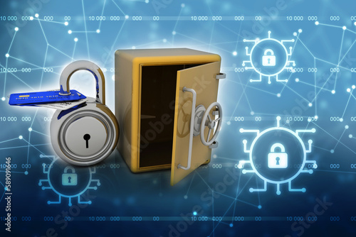 3d rendering credit or debit card protection lock with metal locker