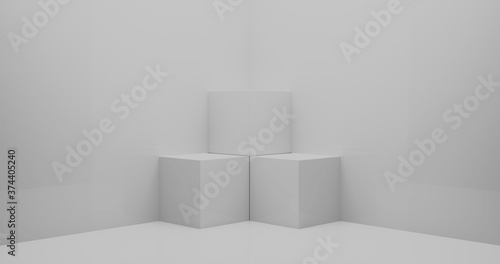 3d rendering. Abstract composition of geometric shapes in a bright room. A podium for your mockup.