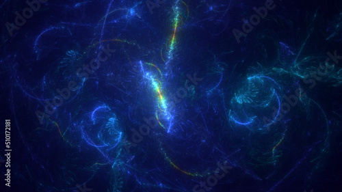 3D rendering abstract multicolored fractal light background with bright center