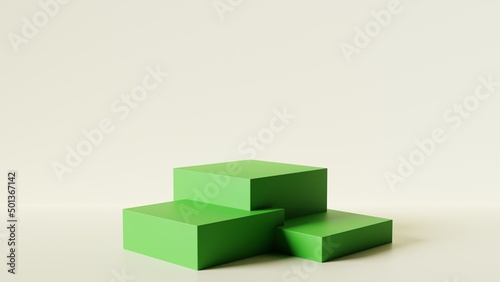 3d rendering background green podium and minimal white wall scene, minimal podium Stage render for product mockup
