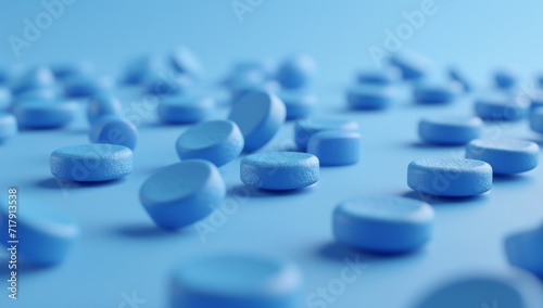 3d rendering blue pill pills abstract on a blue background, in the style of monochromatic.