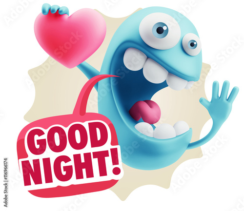 3d Rendering. Emoji in love holding heart shape saying Good Nigh