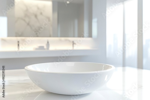 3D rendering, empty white counter in bathroom, copy space on white table in blurred bathroom with generative ai