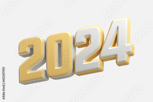 3d rendering Happy new year 2024 gold 3d text effect banner design template