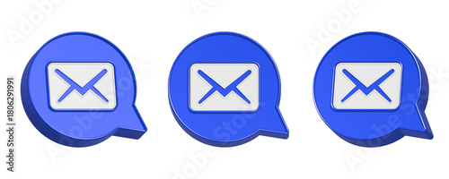 3d rendering icon message in blue bubble