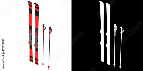 3D rendering illustration of alpine skis with poles