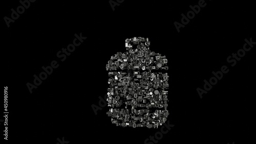 3d rendering mechanical parts in shape of symbol of bottle isolated on black background