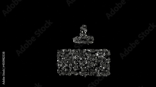 3d rendering mechanical parts in shape of symbol of kitchen furniture isolated on black background