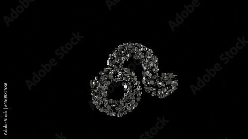 3d rendering mechanical parts in shape of symbol of Leo zodiac isolated on black background