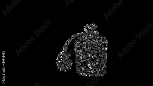 3d rendering mechanical parts in shape of symbol of perfume isolated on black background