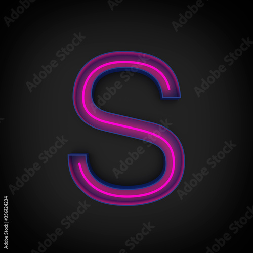 3d rendering, neon red capital letter S lighted up, inside blue letter,