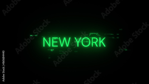 3D rendering New York text with screen effects of technological glitches