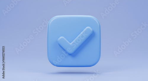 3D rendering of a blue check mark inside a rounded square on a light blue backdrop