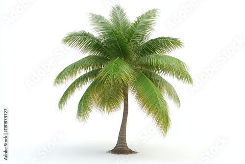 3D rendering of a coconut tree isolated on a white background, isometric view, high-resolution photography.