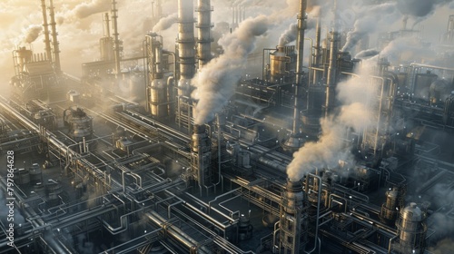 3D rendering of a dystopian petrochemical plant