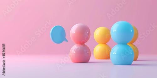 3D rendering of a group of colorful balls with one ball isolated on a pink background.