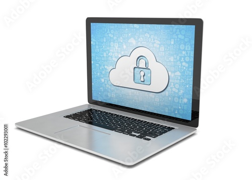 3d rendering of a laptop with cloud security concept