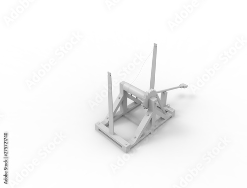 3d rendering of a Leonardo Da Vinci catapult in white background
