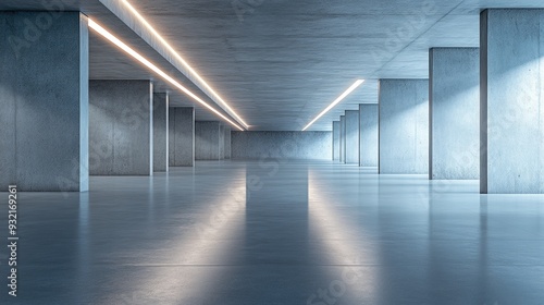 3D rendering of a modern abstract architectural design featuring an empty concrete floor ideal for a vehicle showcase