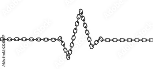 3d rendering of a single chain making a shape of a heartbeat ECG shape on a white background.
