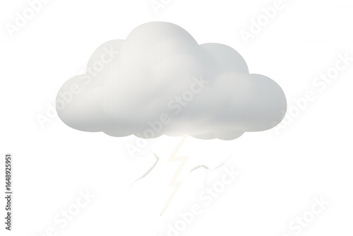 3d rendering of a white cartoon cloud emitting a lightning bolt on a transparent background, ideal for weather forecast or thunderstorm concepts