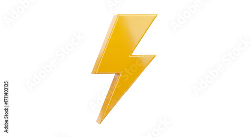 3D rendering of a yellow lightning bolt symbol on transparent background