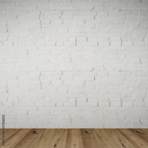 3d rendering of an empty room with wooden floor and bricks wall. Rendering made using free software blender.
