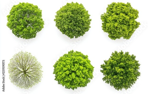 3D rendering of big green trees seen from above with clear transparent backgrounds