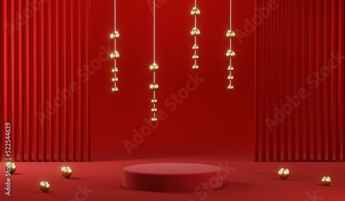 3D rendering of blank product background for cream cosmetics Modern red podium background