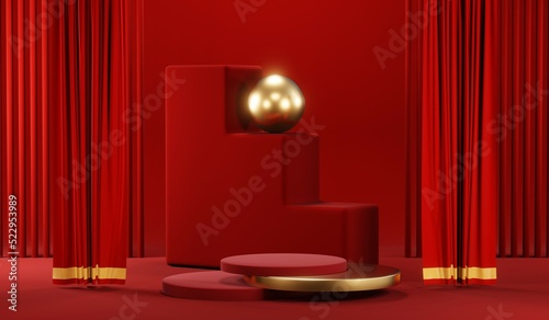 3D rendering of blank product background for cream cosmetics Modern red podium background