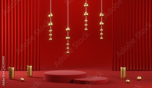 3D rendering of blank product background for cream cosmetics Modern red podium background