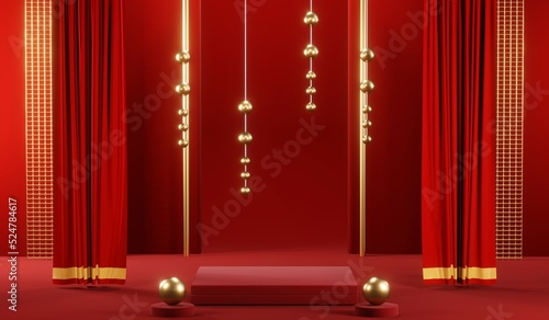 3D rendering of blank product background for cream cosmetics Modern red podium background