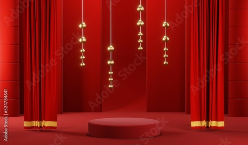 3D rendering of blank product background for cream cosmetics Modern red podium background