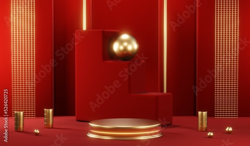 3D rendering of blank product background for cream cosmetics Modern red podium background