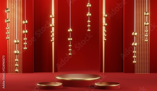 3D rendering of blank product background for cream cosmetics Modern red podium background