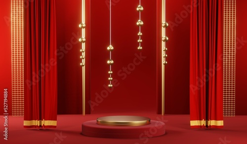 3D rendering of blank product background for cream cosmetics Modern red podium background
