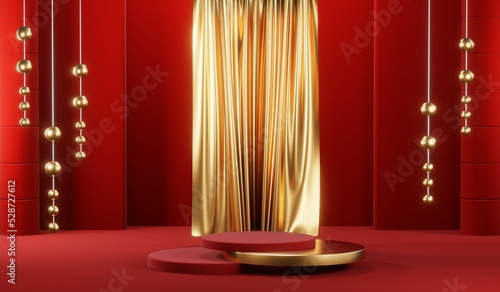 3D rendering of blank product background for cream cosmetics Modern red podium background