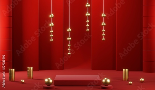 3D rendering of blank product background for cream cosmetics Modern red podium background