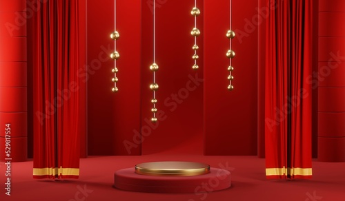 3D rendering of blank product background for cream cosmetics Modern red podium background