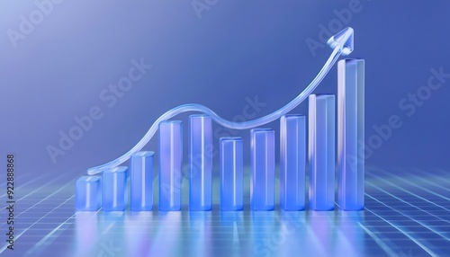 3D rendering of Business Growth Graph with Upward Arrow and Financial Chart on pastel background.
