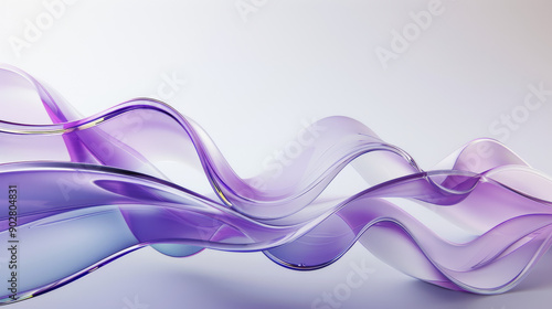 3D rendering of flowing purple and blue glass ribbons, symbolizing elegance and movement with glass elements.