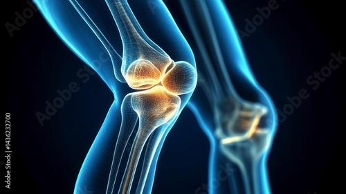 3D rendering of human knee joints, highlighting bone structure and cartilage.