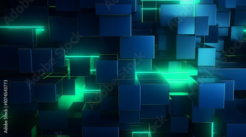 3d rendering of mind green and blue abstract geometric background. Scene for advertising, technology, showcase, banner, game, sport, cosmetic, business, metaverse. Sci-Fi Illustration. Product displa
