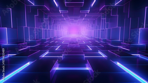 3d rendering of purple and blue abstract geometric background. Scene for advertising, technology, showcase, banner, game, sport, cosmetic, business, metaverse. Sci-Fi Illustration. Product display
