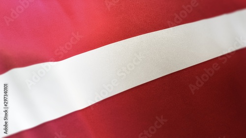 3D rendering of the national flag of Latvia waving in the wind. The banner/emblem is made of realistic satin texture and rendered in a daylight situation.