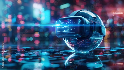 3d rendering of virtual reality headset with holographic display on the sphere